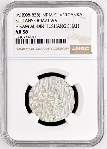 Malwa: Hushang Shah (1405-1435), silver tanka, AH 835 (1431-1432 CE). NGC AU58.