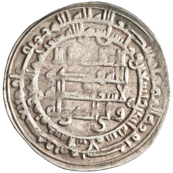 Abbasid: al-Muktafi (902-908), silver dirham (2.75g), Madinat al-Salam (Baghdad) mint, AH 291 (903-904 CE). Citing vizier by his title Wali al-Dawla.