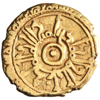 Sicily: William I (1154-1166), gold tari (1.64g), Siqiliya (Sicily), 1154-1166 CE. William cited with title al-Hadi. Pellet in obverse center, inner margin "al-hadi bi-amrillah al-malik ghulyalim" (the one who guides by the command of Allah, the King William), Arabic legend in outer margin / Cross flanked by IC-XC NI-KA in reverse center, Arabic legends around.