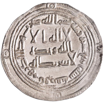Umayyad: Hisham (724-743), silver dirham (2.80g), Ifriqiya mint, AH 114 (732-733 CE). Klat 101. Lustrous. About uncirculated. Scarce.