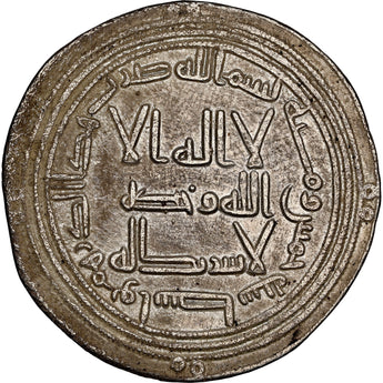 Umayyad: Yazid II (720-724) to Hisham (724-743), silver dirham, Wasit mint, AH 105 (723-724 CE). NGC AU Details -Rev scratched.